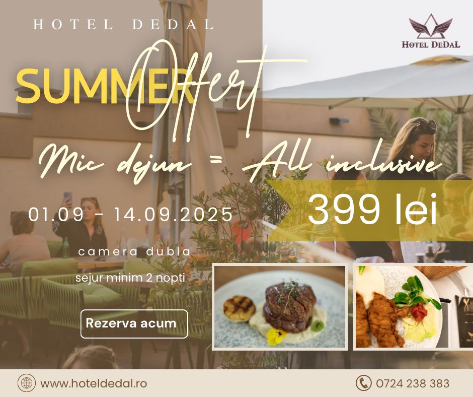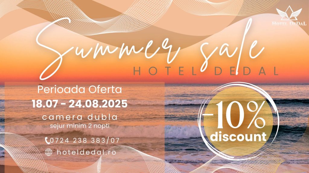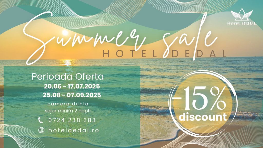 Vă informăm că începând cu sezonul 2024, se va încasa la recepție în momentul cazării taxa de stațiune, reprezentând 1% pe noapte/cameră, procent dedus doar din cazare, care va fi comunicat la momentul check-in-ului, conform HCL nr. 02/10.02.2022.